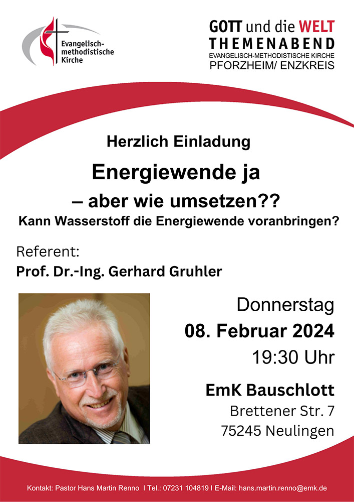 Die Reihe „GOTT und die WELT Themenabend“ wird von den fünf Evangelisch-methodistischen Bezirken im Verbund Enzkreis gestaltet.